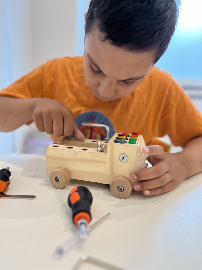 Regularnie uczęszcza na zajęcia logopedyczne i pedagogiczne, które wspierają jego rozwój poznawczy i umiejętność wyrażania emocji.