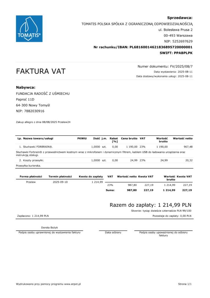 Zakupiliśmy słuchawki Forbrain dla Zosi – to niezwykle pomocne narzędzie w terapii mowy i rozwoju poznawczym. Dzięki Waszemu wsparciu mogliśmy pokryć koszt zakupu sprzętu, który będzie codziennym wsparciem w jej…